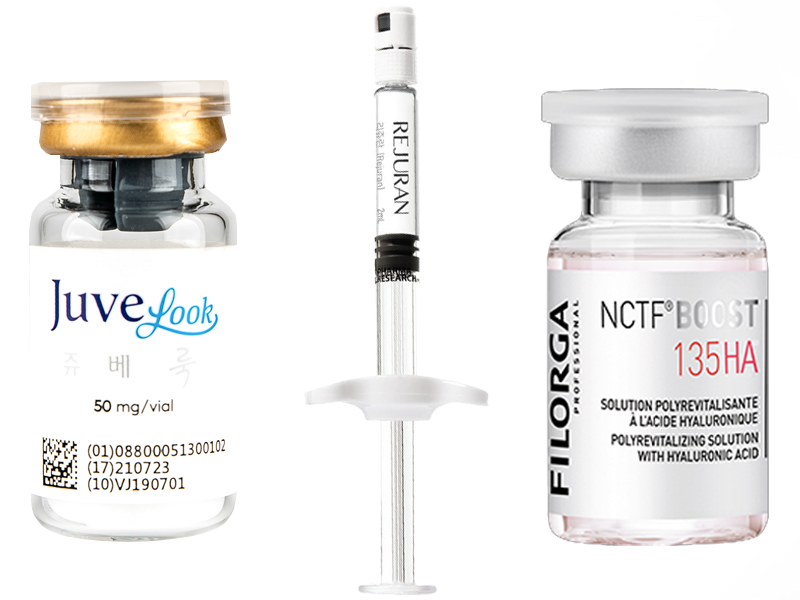 - 리쥬란(Rejuran): 연어 DNA에서 추출한 PN(폴리뉴클레오타이드) 성분으로, 피부 재생과 탄력 개선에 효과적입니다.