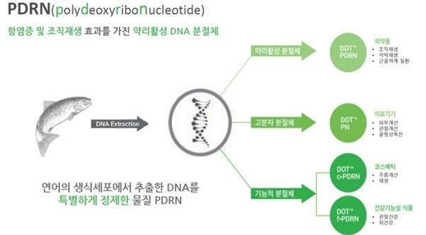 PDRN(Polydeoxyribonucleotide)은 연어 정소(생식샘)에서 추출한 DNA 조각으로, 세포 재생과 피부 치유를 촉진하는 강력한 성분입니다. PDRN은 우리 몸의 DNA와 유사한 구조를 가지고 있어, 손상된 피부 조직을 복구하고 콜라겐 생성을 유도하는 데 중요한 역할을 합니다.